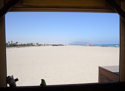Anyhow, with an assurance that our table would be waiting (David and Graeme are well known here!) off we went. Well, I have never come across this part of the beach in 7 and a half years of living here. A little tricky to find, it is situated between Vera beach and Garrucha, D’Maruja is only one of two Chiringuitos on this stretch of beach. The other thing that should be noted is that the beach itself is simply divine –white sand all the way and the water as calm and blue as anything. There are beds and umbrellas for hire in front of the restaurant and so it makes a perfect location for a whole day out.