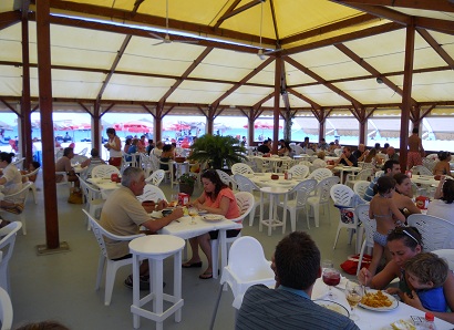 Next time we go, I am taking a small pot of chilli sauce with me! Then there is the usual fantastic salad and after that a huge choice of meat or fish – we all had veal escalope just because I had cooked fish for two days running at home and I needed a meat fix! But you can be sure that everything here is freshly cooked and absolutely delicious because their clientele is clearly very important to them (most of the houses on this stretch are upwards of a million euros and so standards are high). We didn’t have any room for dessert – I would concentrate on the starters and mains frankly. We had a few glasses of wine and the boys drank beer and lots of water. Our bill came to an amazing 20 euros a head with a tip! You can’t complain at that can you? Suffice it to say we will be cramming in as many visits as possible before they close during the second week of September!