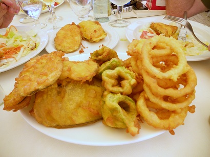 But back to D’Maruja itself – ok get this – they only have to open for around 7 weeks a year and so after the 1st week in September you will have to wait until the middle of July next year to dine here! It is basically a huge structure covered with canvas – there are lots of kind of portable kitchens at the back, cooking the most amazing array of delicious food and a little different too than the normal fayre. I guess they have enough tables for 100 people here and puts me in mind of Le Club 55 in St Tropez (the first beach bar there) only about a million euros cheaper! Go for the berenjena, pimiento y cebollo (Tempura of aubergine, green peppers and onion rings like you have never had in your life).