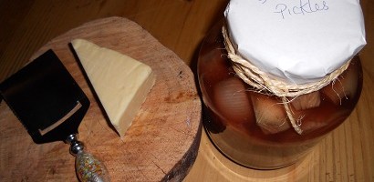 Cut up your onions and put half in the jar, followed by good teaspoon of the pickling spice, top up the jar with more onions and spices and then pour over the vinegar right up to the top and seal with the lids. You need to store them in a cool dark place for several weeks before eating. Voila!